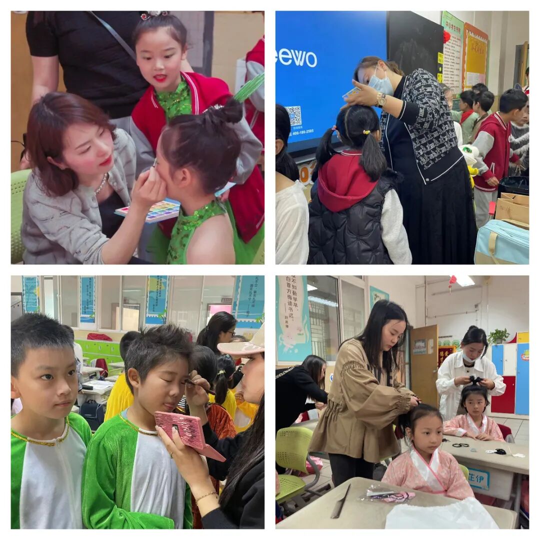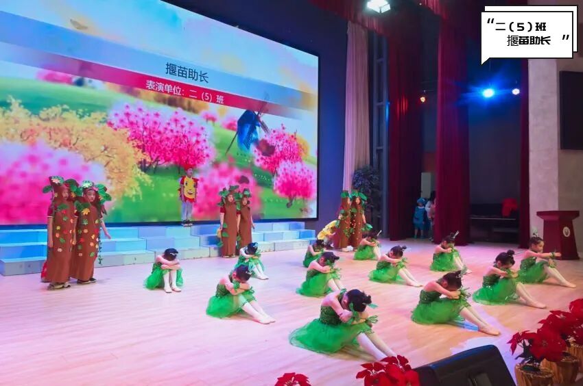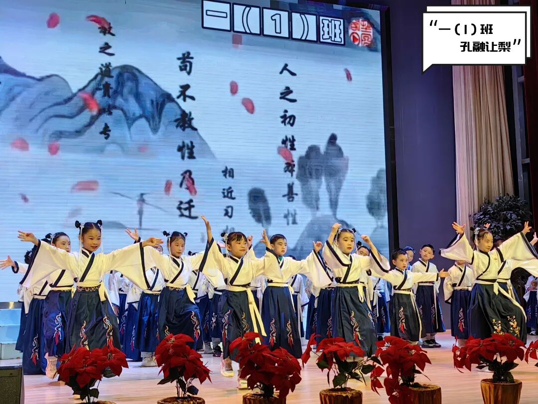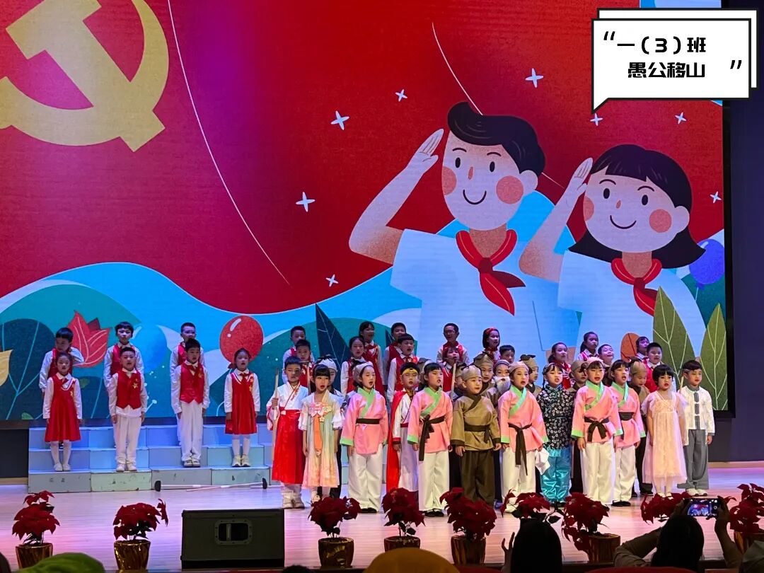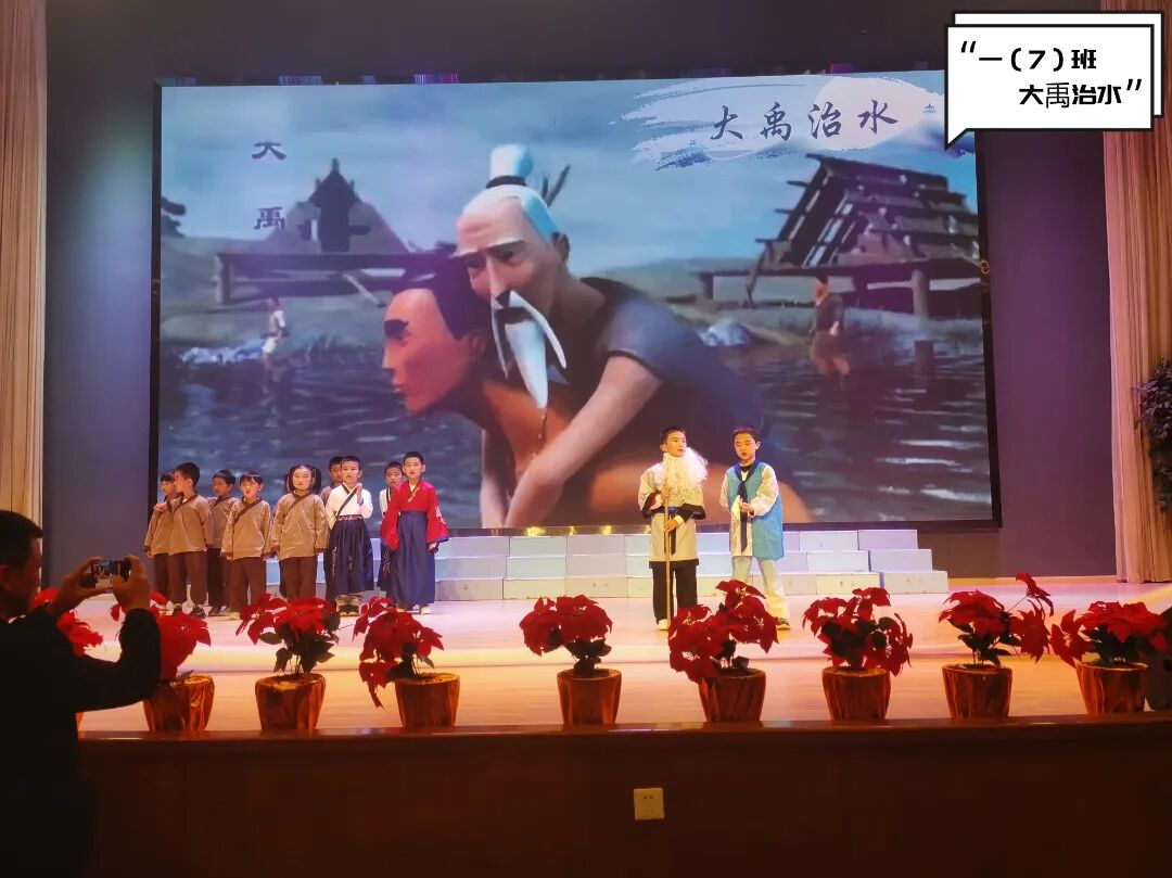 一、二年级的学生们几乎全员上台,演绎读过的经典童话、寓言或故事,如《孔融让梨》、《愚公移山》、《小红帽》……