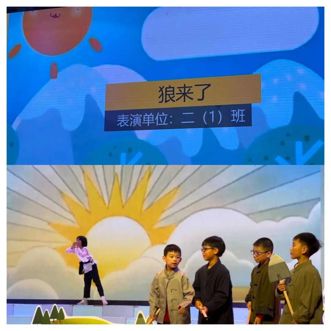 经典的寓言故事被二年级的同学们完美演绎,一个个前人总结的人生哲理生动、立体、直观地呈现在观众眼前,令人耳目一新的同时发人深省。
