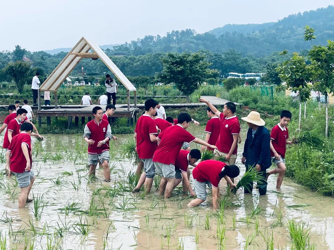 夹携着暖意的春风逐渐吹尽,取而代之的是悠悠的蝉鸣与炎热的阳光。5月11日,武汉美加外语学校初中部的学子们在初中部校长江爱华、校党总支书记潘丽华等学校领导和老师们的带领下,走出校园,来到田间,触碰和感受到了夏天的自然律动,用指尖触碰每根稻苗,感悟炎之夏所蕴含的自然哲理,在十里莲华养心谷上了一堂以“秧种”为主题的自然四季生态课。