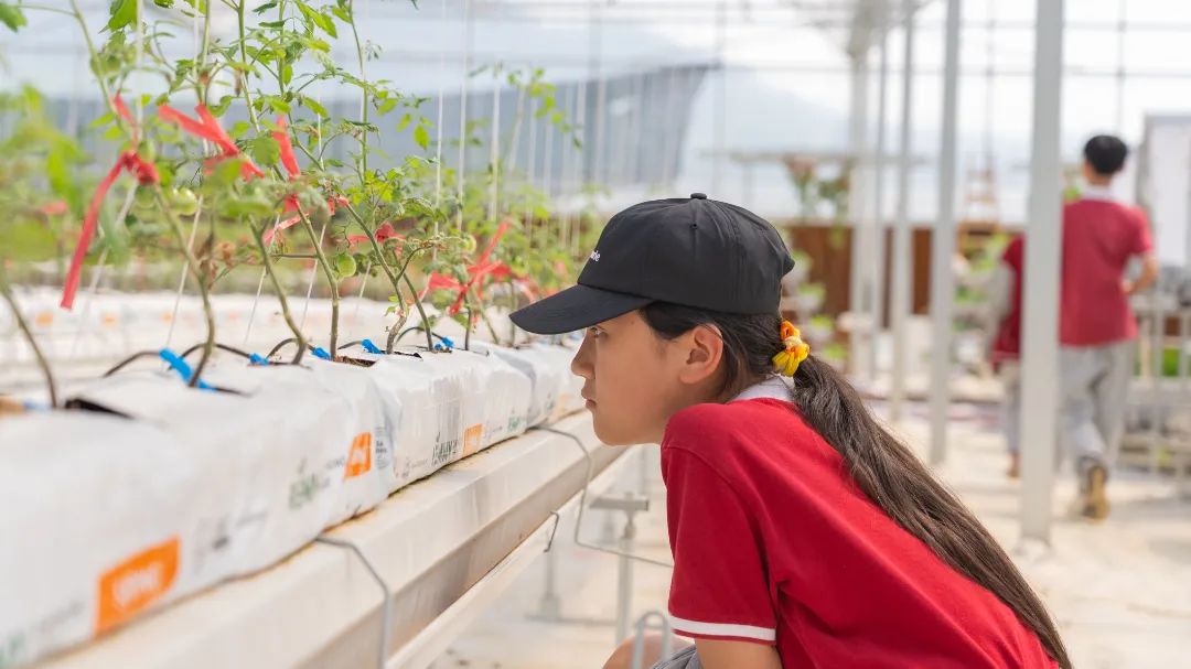 最后大家走进温室大棚参观,跟随着研学导师的步伐,近距离接触各种各样的蔬菜,了解滴水灌溉系统和无土栽培技术。刚一进去就有同学们大喊:“看,这是香菜。”不一会就有同学出来反驳说“你错了,这是芹菜。”惹得旁边同学们哈哈大笑。类似于这样辨别错的情况,在各个班级的参观过程中时有发生,有的同学都被自己逗乐了,时不时会听到同学们发自肺腑地说一句:“出来走走真的太重要了。”所谓纸上得来终觉浅,绝知此事要躬行呀。