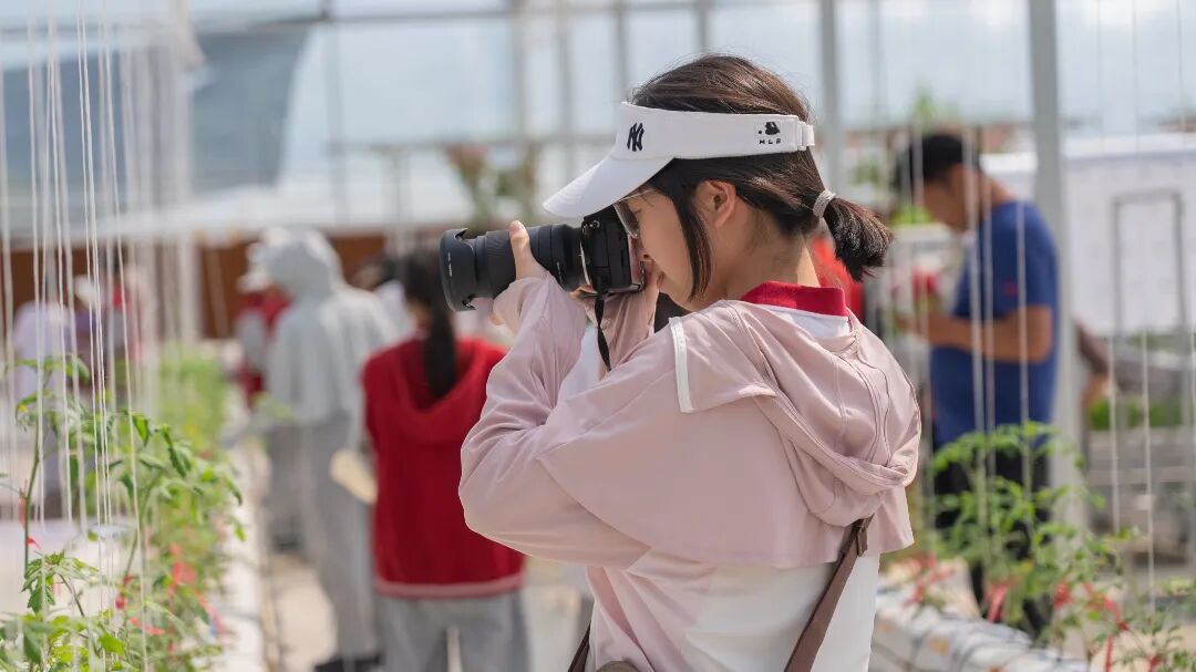 长势喜人的蔬菜吸引了同学们中的摄影爱好者,他们端起相机,凝神拍照的样子又吸引了我们专业的摄影师,共同记录美好时刻。