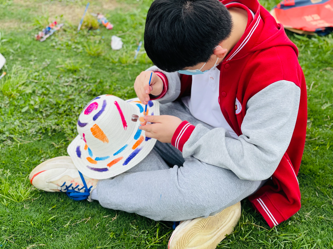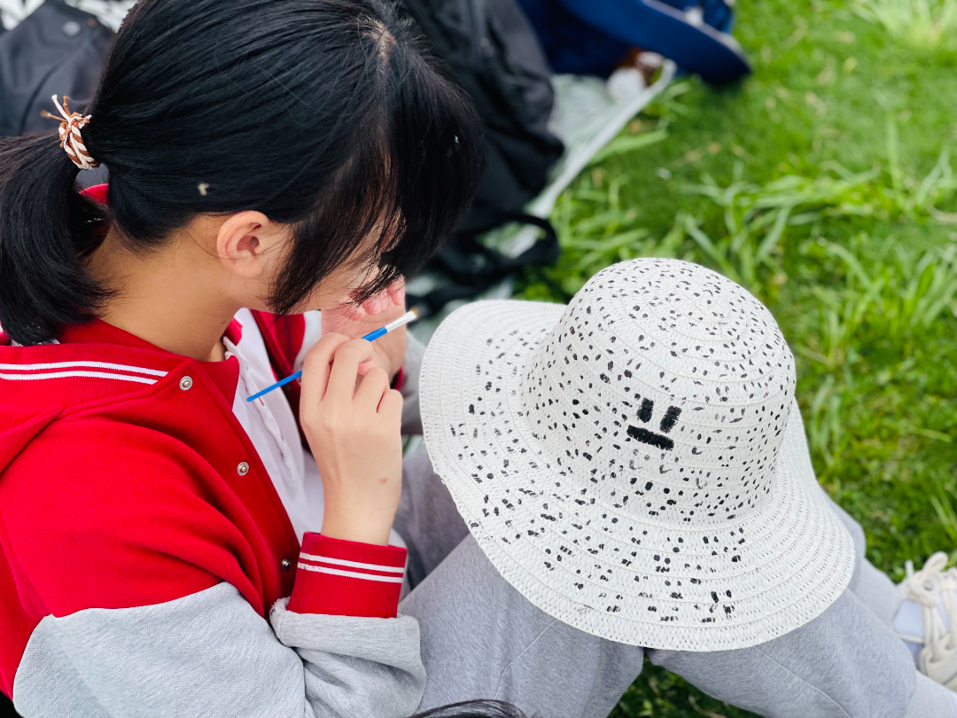 “动如脱兔,静如处子”。正是美加学子的写照,结束了稻田里的劳作和嬉戏,下午大家围坐在草地上安静的开始了手绘。全神贯注、一丝不苟的将自己的想象力和个性展现在一顶顶草帽上。有的被打造成全球唯一的大牌高定,有的被当做代言墙写满孩子的心声,有的前卫抽象,有的清新可爱,就像他们自己,每一个都是世界上的独一无二。