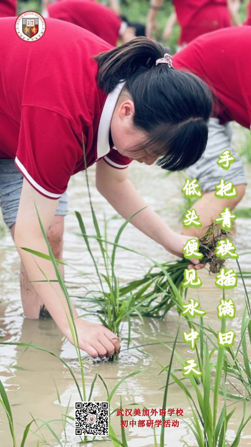 “手把青秧插满田,低头便见水中天。六根清净方为道,退步原来是向前。”这首唐朝布袋和尚写的插秧诗已经传诵了千年,它饱蕴禅机,充满人生智慧,相信同学们在“低头”、“退步”和“向前”中更能体会到劳作中所蕴含的人生哲理。
