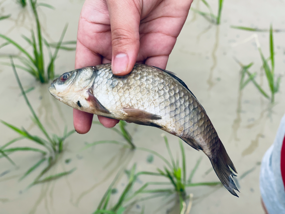 “为什么稻田里会有鱼呢?”同学们又有了新的问题。研学导师告诉我们,这是因为根据稻鱼共生理论,可以将原有的稻田生态向更加有利的方向转化,达到水稻增产鱼丰收的目的。利用人工新建的稻鱼共生关系,既可获得鱼产品,又可利用鱼吃掉稻田中的害虫和杂草,排泄粪肥,翻动泥土促进肥料分解,为水稻生长创造良好条件,一般可使水稻增产一成左右。同学们纷纷表示书上没有的知识又增加了。