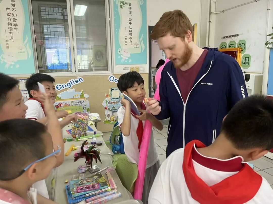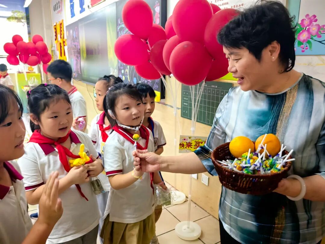 “买主们”来啦!一间间教室瞬间变成了一个个小型市场,好热闹呀。小学部谢校长也参与活动,给孩子们送上节日甜蜜祝福,共同度过欢乐的美好时光!