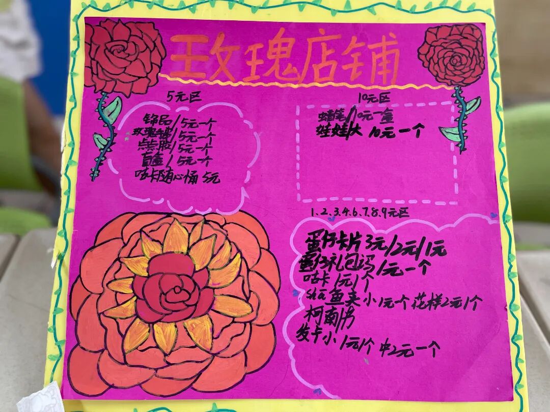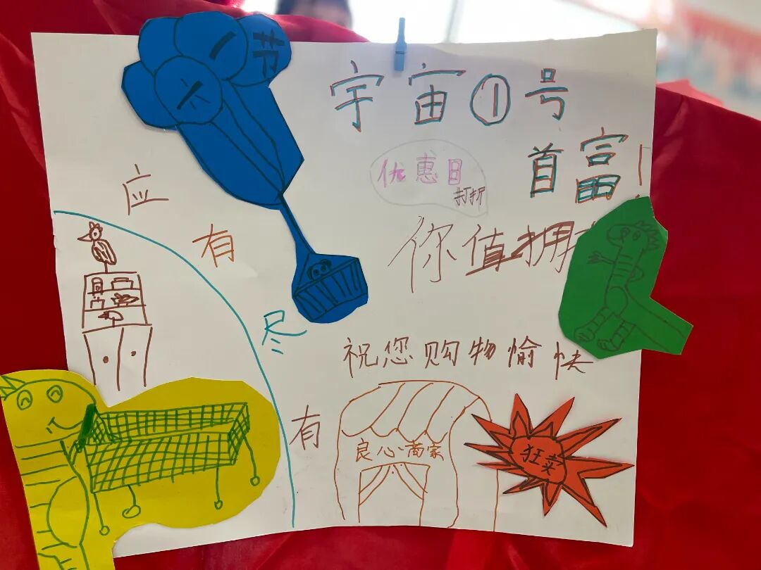 周末孩子们着手整理自家闲置物品,动手制作宣传海报,和家人一同商定价格。各班级老师组织学生一同布置教室,设计摊位,真是创意十足,层出不穷。为了能够吸引“买家”,孩子们对自己的商品进行了充分的宣传。有的热情的向“顾客”介绍自己的货品;有的搞起了“打折”的活动;有的物品进行限时秒杀,营销策略丰富多样。