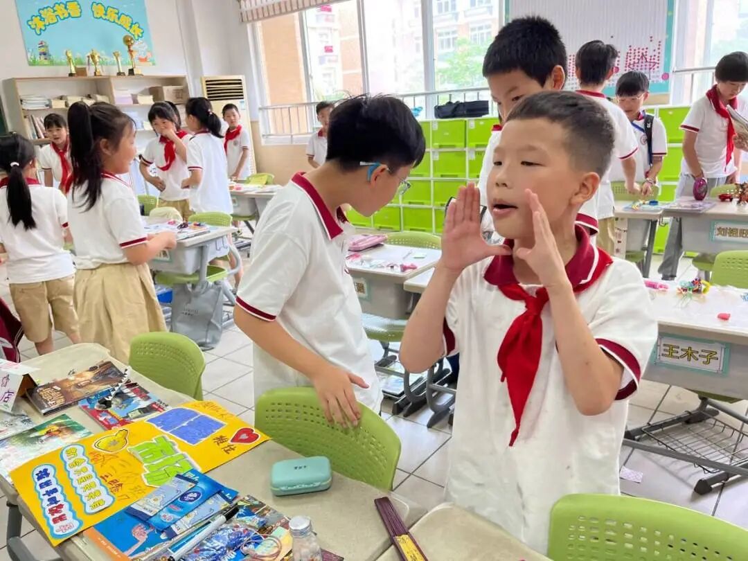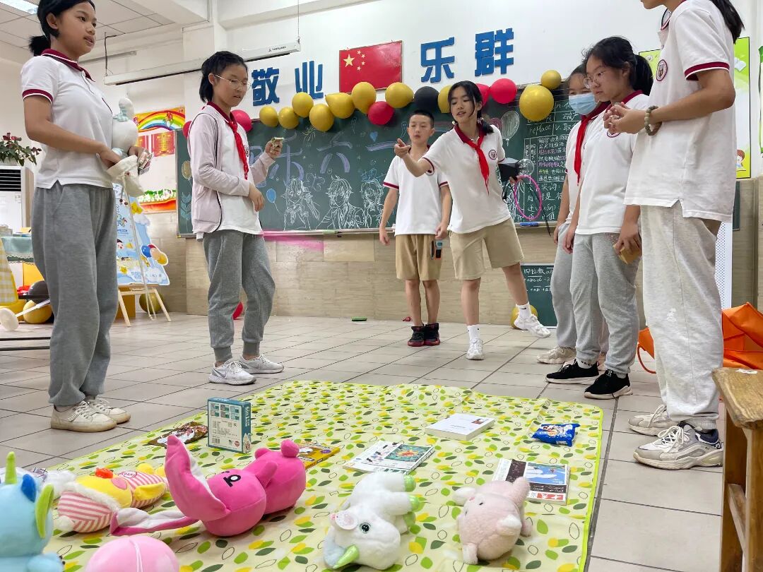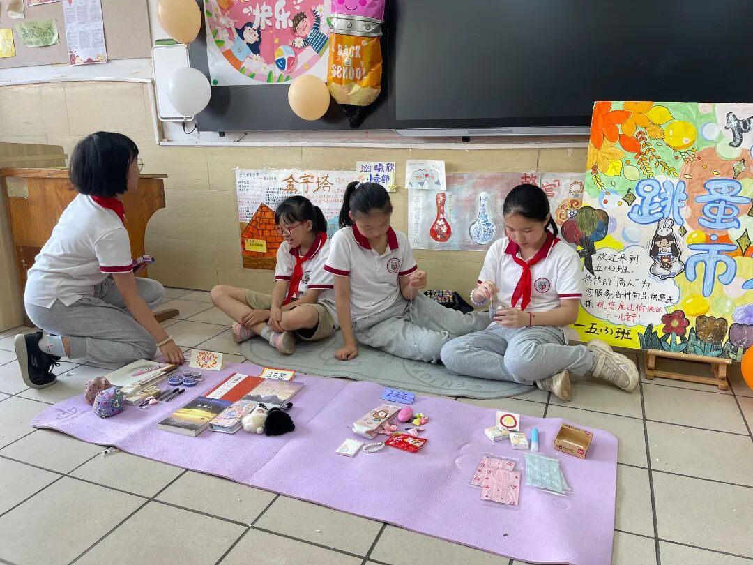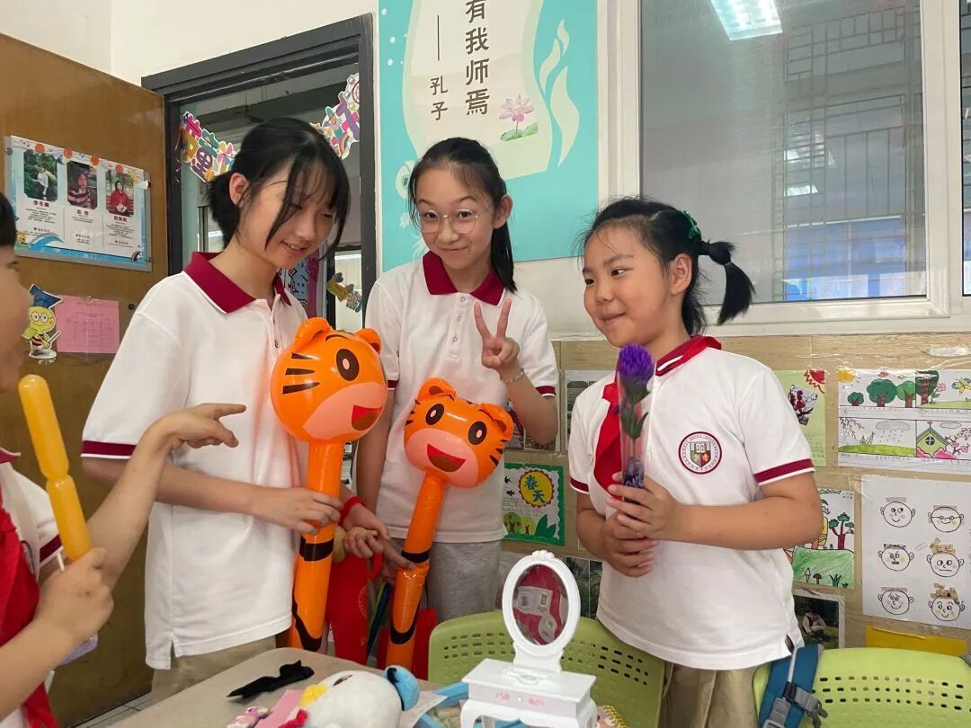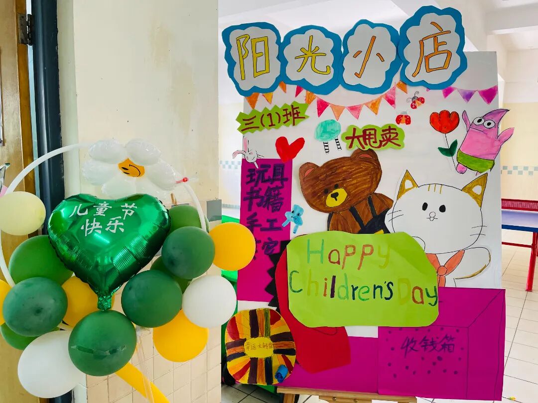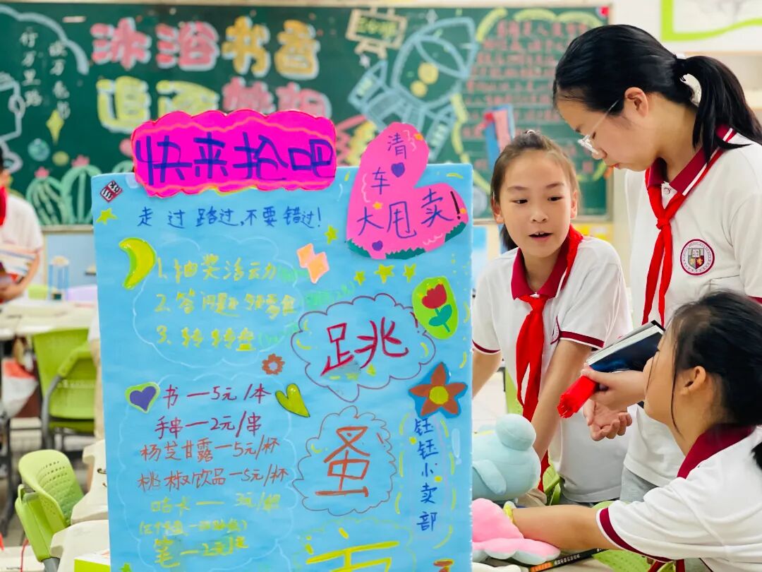 六一的下午,为了锻炼孩子们的社会实践能力、交往能力、理财能力,同时培养孩子们的情商、财商和碳中和意识,孩子们把闲置的书籍、物品,放到校园“阳光笑脸 童趣集市”上交易。他们开商店,成立公司,宣传广告,摆卖布置,实现了书籍、文具等资源的交流、共享,收获了环保、节约意识,为童年增添了一次美好的经历。