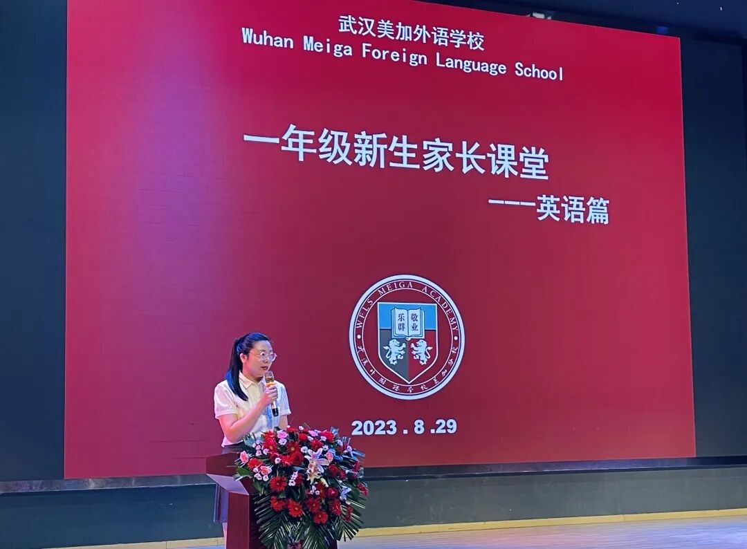美加小学部校长介绍学校历史和办学成绩,指导家庭教育方法,强调家校合作的重要性,将现场气氛推到了高潮。