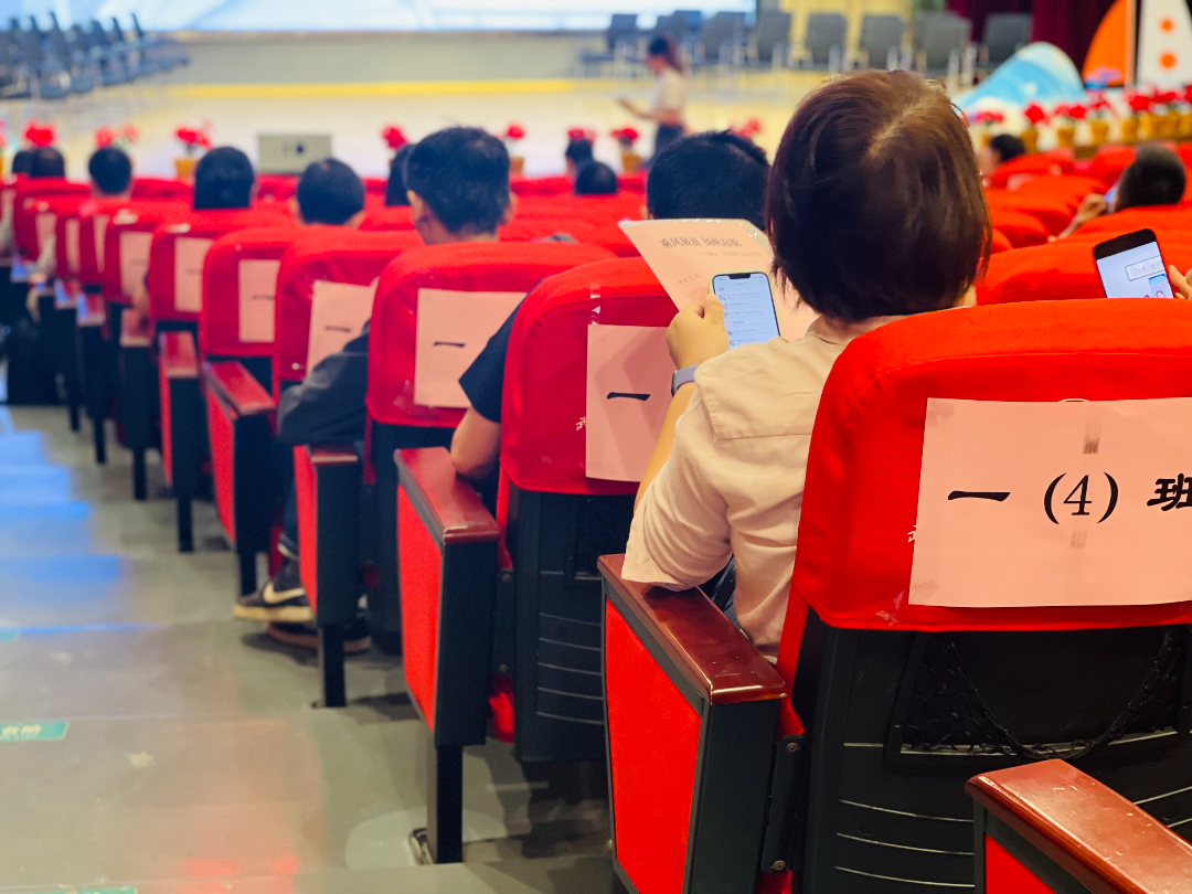 伴随着清晨的阳光,家长们有序签到进入礼堂入座。