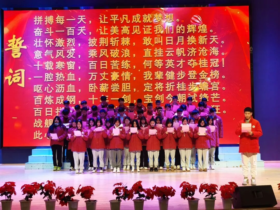 华风猎猎,出征的号角已经吹响;战鼓擂擂,美加高中的学子即将启程。此次大会的召开,坚定了同学们冲刺高考的决心,激发了同学们搏击长空的斗志。有了校领导的关怀、老师们的教诲和大家的鼓励,相信同学们必定能百日伏案绘锦绣,六月昂首啸长天!