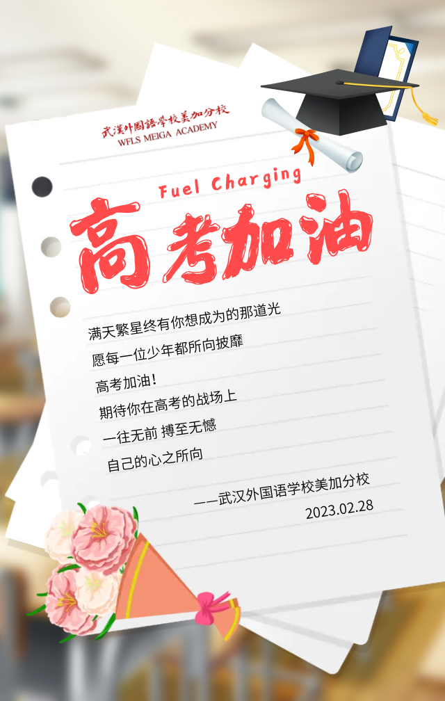 最后,美加外校高中部李书记发表了语重心长又慷慨激昂的致辞!“100天可以描绘出人生最美好的蓝图,100天可以改写人生平凡的档案,100天可以成就人生的梦想,100天可以创造意想不到的辉煌。100天可以让我们展翅飞翔”。李书记希望师生携手,共同夺取2023届高考胜利,创造新辉煌!
