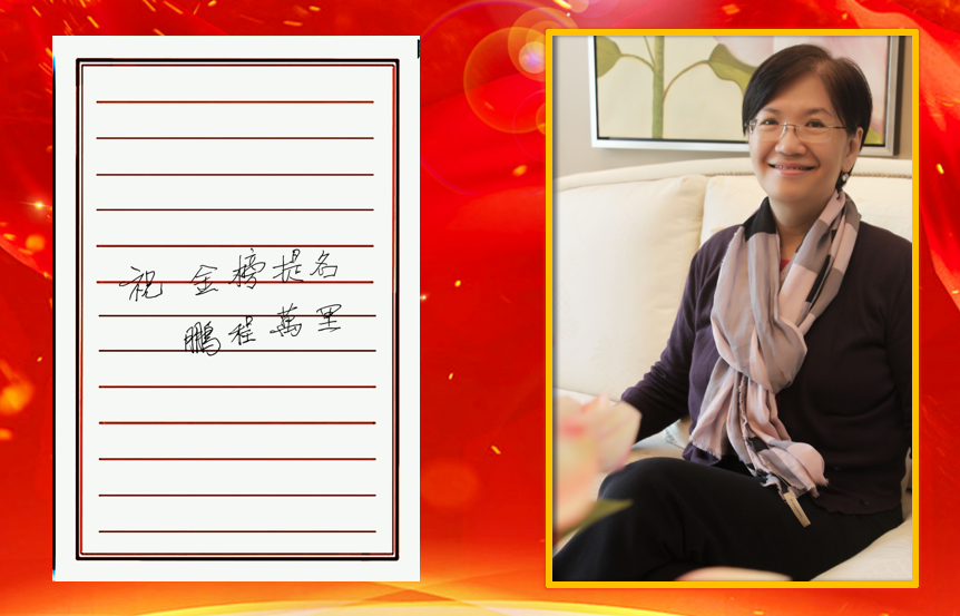 美加外校荣誉董事长萧永瑞女士在百忙之中也亲笔题写“金榜题名,鹏程万里”,为大家送来了祝福!